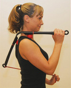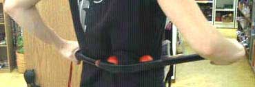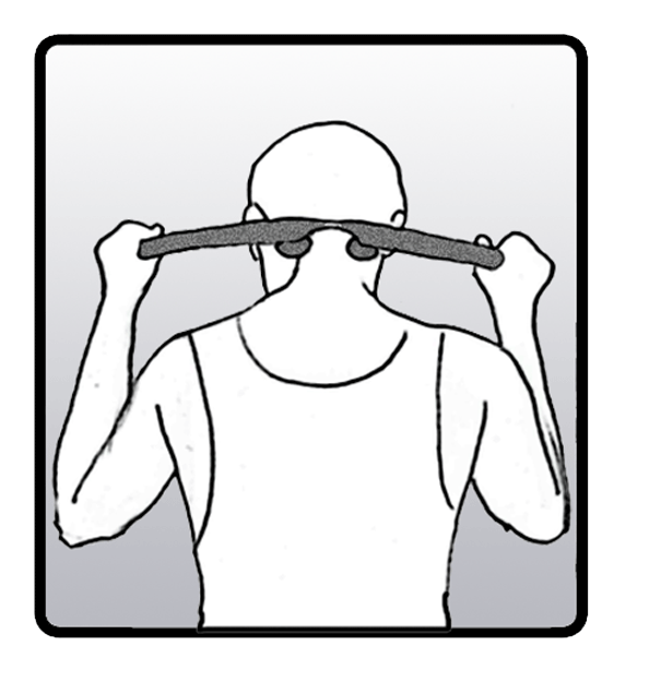 Holding the “golf ball-like” knobs in place, grab the trapezius