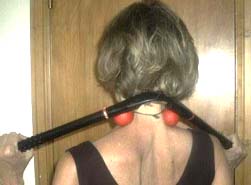 on their shoulders that they can deeply massage by themselves.  Use it like you would yoga.  Get into a position with it, and then deeply